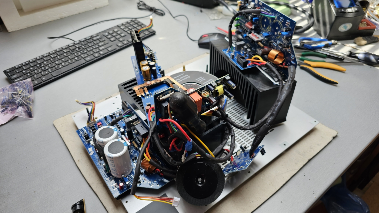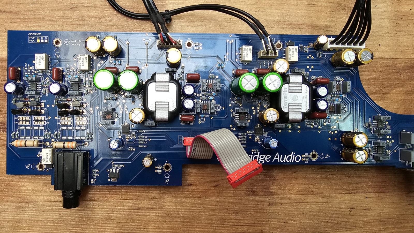 - výměna elektrolytických kondenzátorů v pomocných a lokálních zdrojích za nízko impedanční typy Panasonic FC a audio verze Nichicon UKA a UFW